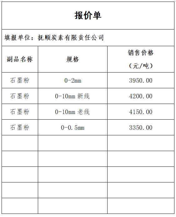 抚顺炭素有限责任公司石墨粉等副品招标内容。